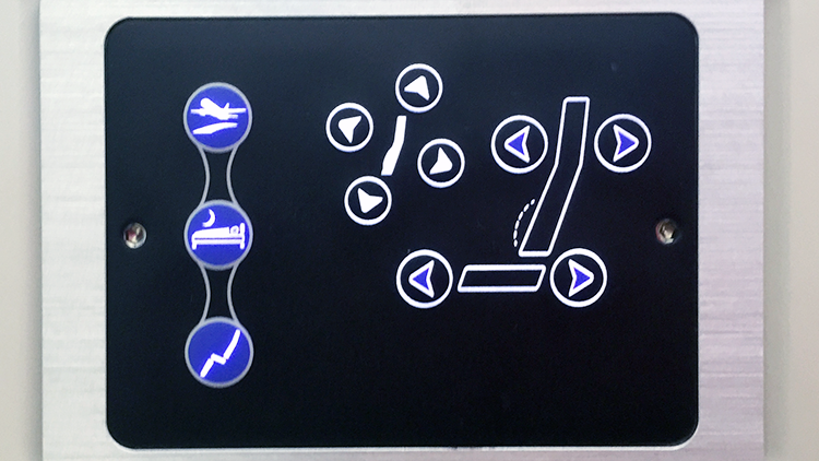 The plane itself was under a year old, and looked clean and fresh. I like the reverse herringbone seats – but I, and especially my partner found the pitch a little tight, especially when trying to exit the seat when in any form of recline.