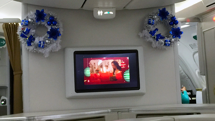 | Other than the addition of Christmas decorations the cabin was the same as our previous 787 flight VN51 HCMC to London. |