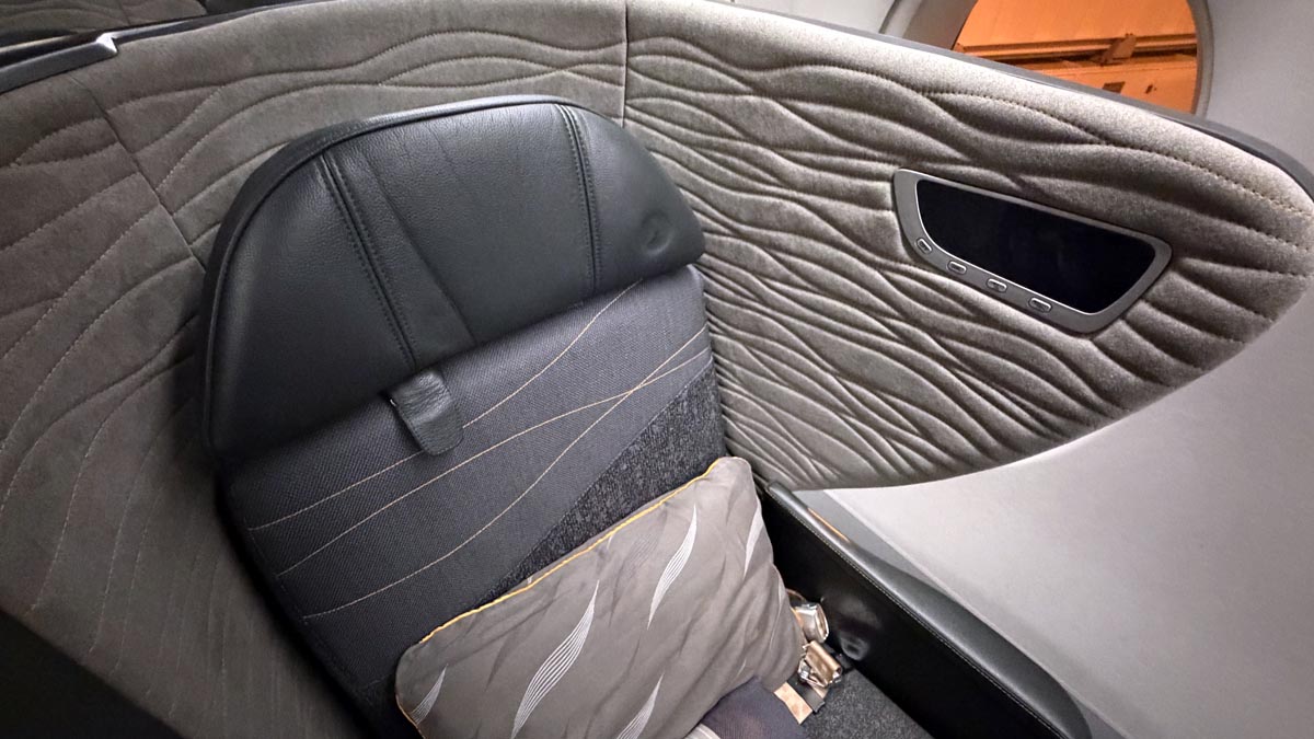 Why would you design a seat with a privacy wing, which runs against the side of the aircraft, where you don’t need one, and blocks a window? Search me. But Turkish has. It just makes no sense. It means you have to lean forward to see anything from the seats, which are actually at the window, with the footwell for the person behind closest to the aisle.