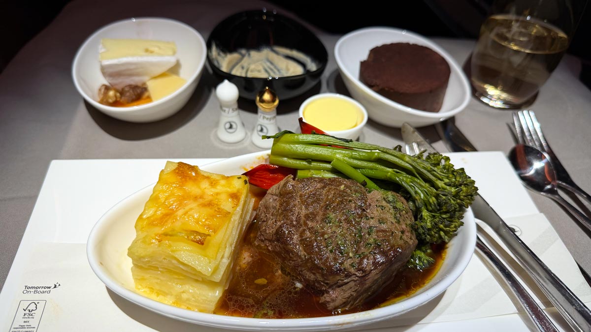 My final leg to London was much shorter. Business Class was just over half full, so the crew, on a much tighter service schedule, could afford to be more attentive, which they were.